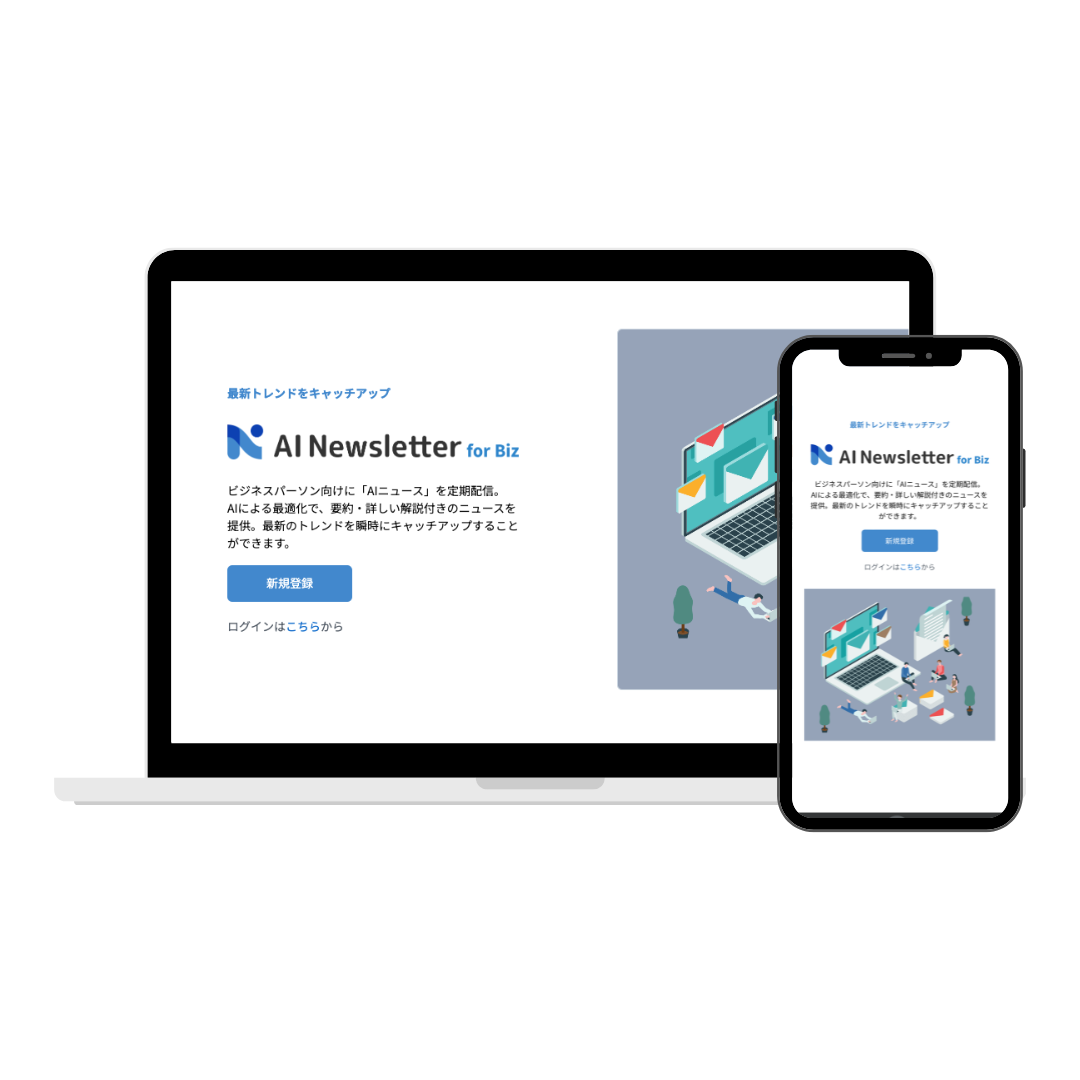 AI Newsletter for Bizは、ビジネスパーソン向けに「AIニュース」をオーダーメイド配信するサービスです。