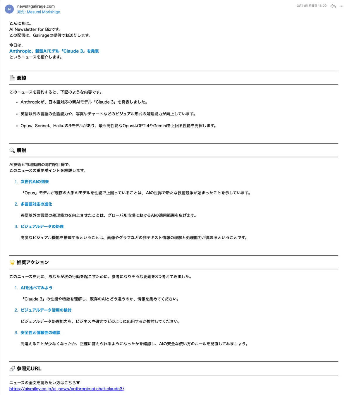 AIトレンドは追いかけている方ですが、このメールで初めて知る情報があって 助かっています。リリースや活用事例など、幅広い情報が届きます。